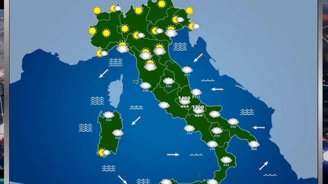 Al mattino molte nubi con deboli piogge su Molise, Puglia e Sicilia occidentale. Al pomeriggio precipitazioni sparse su tutti i settori, più asciutto sulla Sardegna. In serata non sono previsti cambiamenti sostanziali; quota neve in calo nella notte tra Campania, Molise e Basilicata dai 1000-1100 metri.