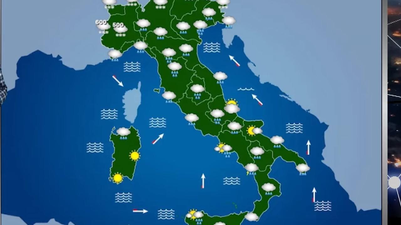 Al mattino tempo instabile con precipitazioni sparse specie su Isole Maggiori e regioni tirreniche. Neve sulla Sardegna fin verso i 1000 metri. Al pomeriggio non sono attese particolari variazioni. In serata e in nottata ancora maltempo su Isole Maggiori e regioni tirreniche. Neve a quote di media montagna.