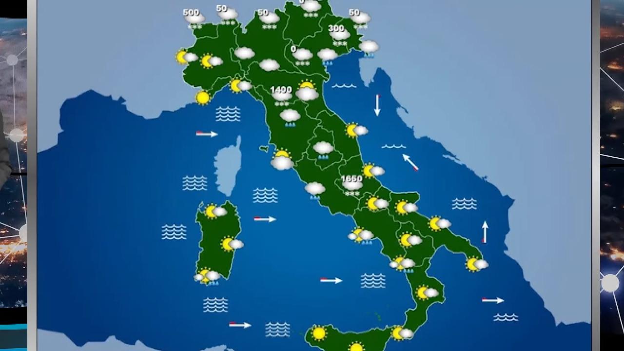 Al mattino molta nuvolosità su tutte le regioni con locali piogge sulla Liguria e precipitazioni sparse sulle Alpi nevose fino a bassa quota. Al pomeriggio locali fenomeni sulle Alpi con neve a quote medio-basse, asciutto altrove. In serata e nella notte ancora molte nubi con tempo asciutto e fenomeni sui settori alpini con neve fin verso i 300-500 metri.