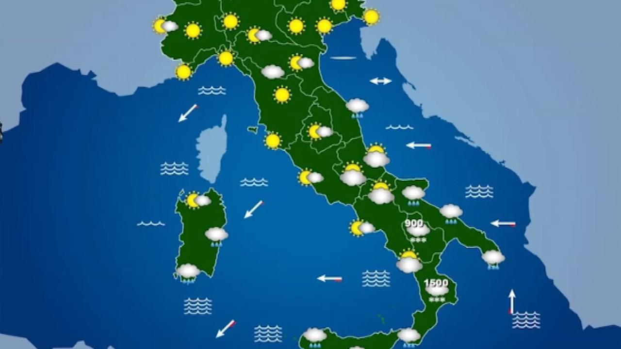 Al mattino tempo instabile con piogge sparse, anche intense tra Calabria e Sicilia orientale. Neve in Appennino fino a quote di bassa montagna. Al pomeriggio ancora piogge sparse, quota neve in rialzo. Residui fenomeni tra la serata e la notte ma verso un miglioramento, schiarite sulla Sardegna.