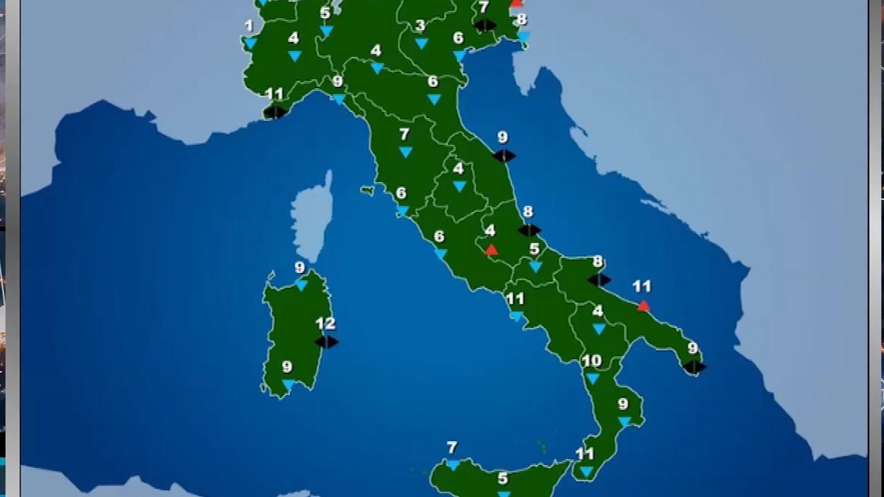 Temperature minime in generale diminuzione e massime stabili o in generale rialzo su tutta l'Italia.