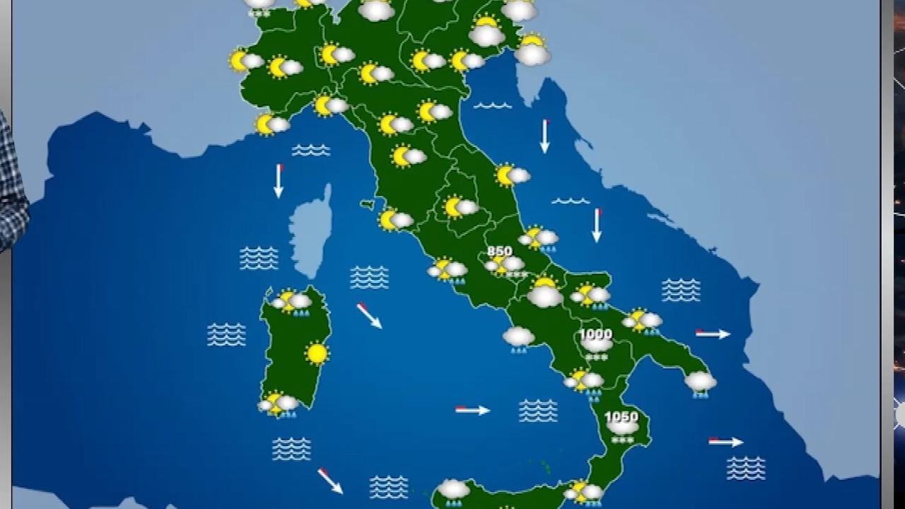 Al mattino maltempo diffuso su tutte le regioni con piogge e temporali sparsi, neve oltre i 900-1200 metri. Al pomeriggio ancora tempo instabile con piogge sparse e neve sui rilievi i 1000-1200 metri, fin verso gli 800 metri sulla sardegna. Tra la serata e la notte tempo in miglioramento ma con residui fenomeni e quota neve in calo fin verso gli 800-1000 metri e fino ai 700 metri sulla Sardegna.