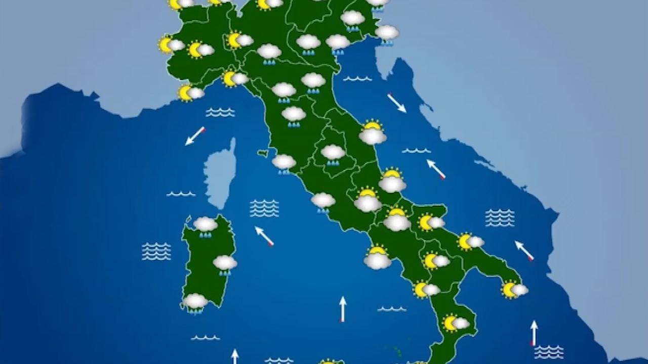 Temperature minime in aumento; massime in calo al centro e sulla Sardegna, stabili o in rialzo altrove.